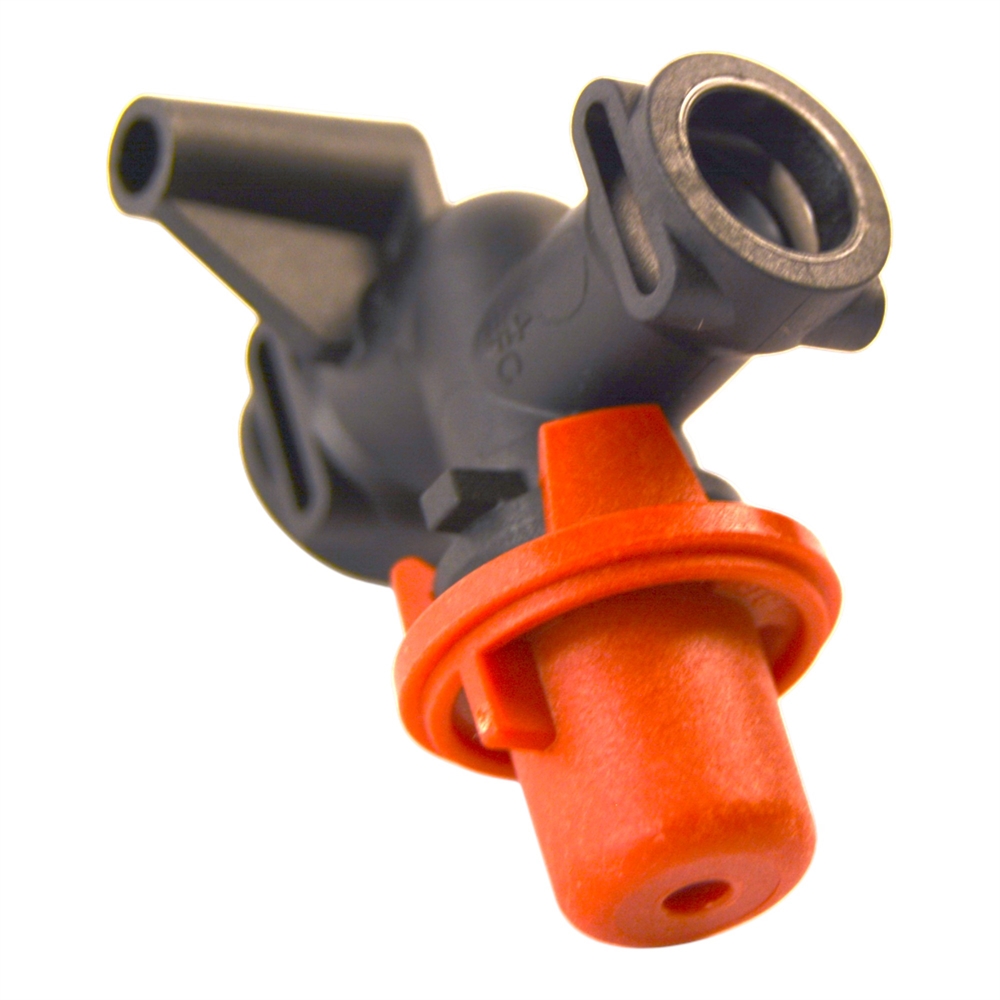- Plast rørtilslutning med rød overtryksventil.