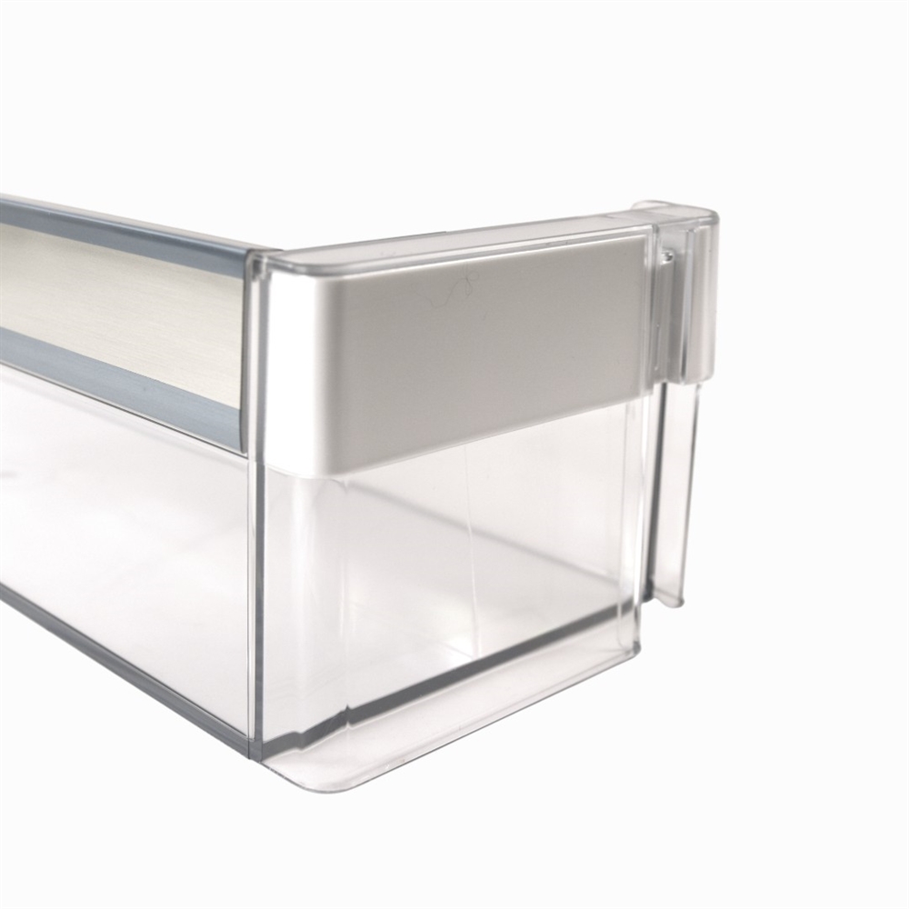 - Transparent dørhylde med med forstærkningsliste på overkant front.