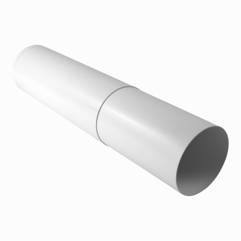 Plast teleskoprør str. ø 100 mm. til aftræk for emhætte og tørretumbler. God til murgennemføring.